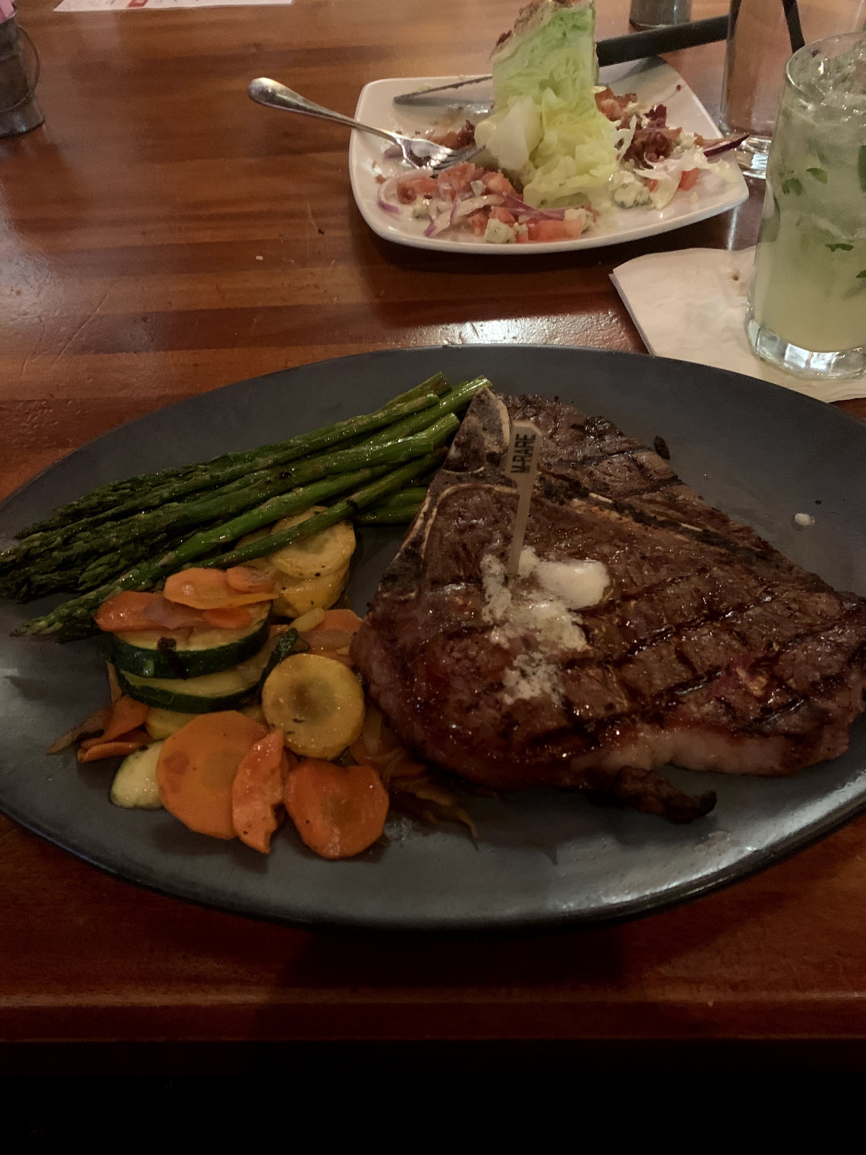 Porterhouse Steak with Herb Asparagus and mixed Veggies